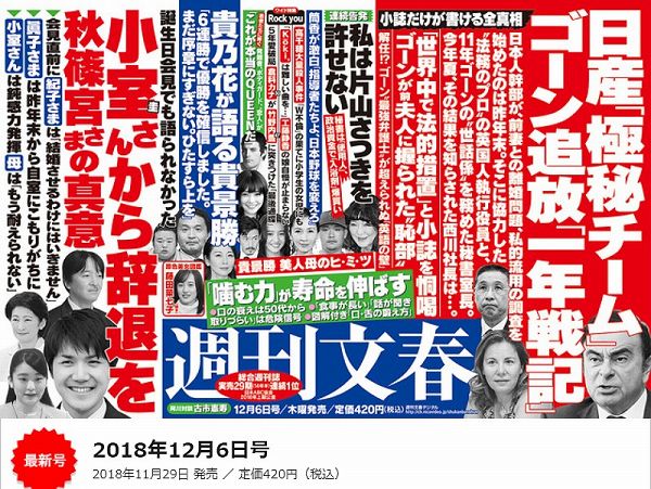 週刊文春は文春オンラインにまだ載っていないので、物凄く簡単に