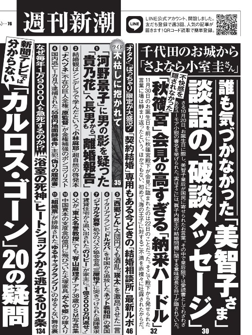 小室さんから辞退を 秋篠宮殿下の真意 週刊文春