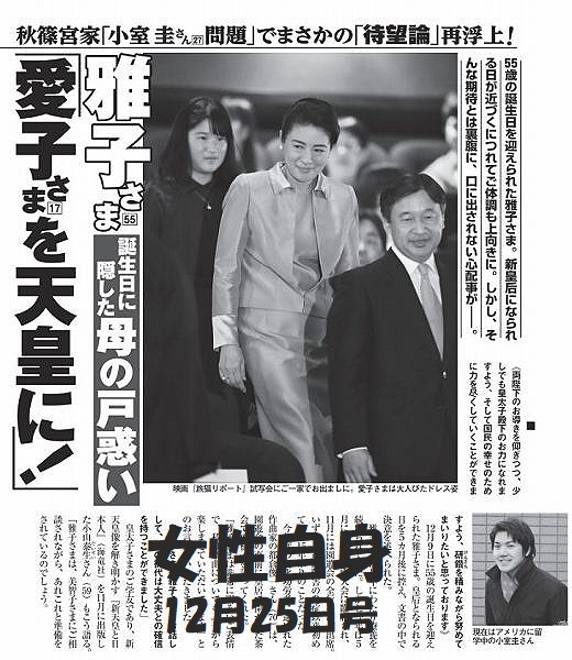昨日ちょうど書店で女性自身の「愛子さまを天皇に」の見出しだけ見て