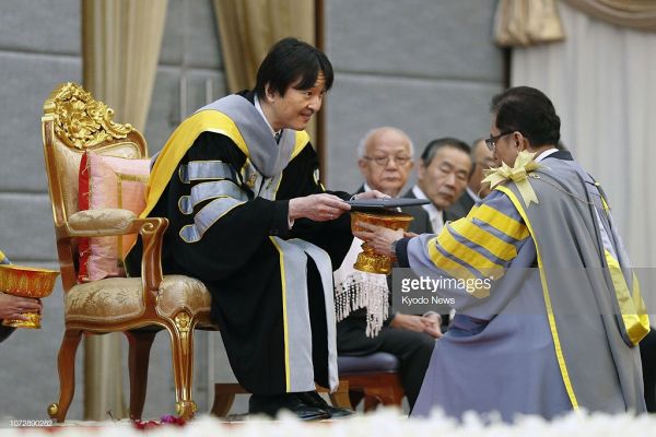 ニワトリの研究が認められ、13日に名誉博士号の授与式に臨まれた。