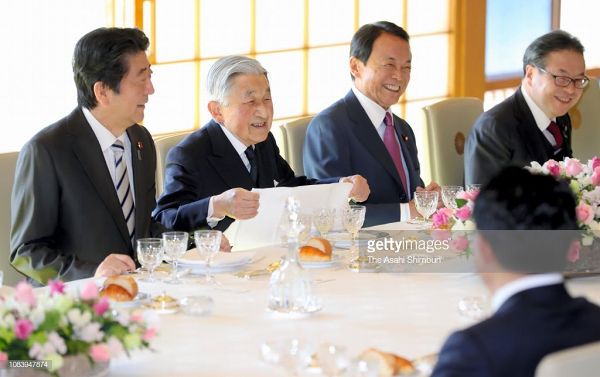 天皇陛下は17日、安倍晋三首相や閣僚、副大臣らを皇居・宮殿に招き、昼食を共にされた。