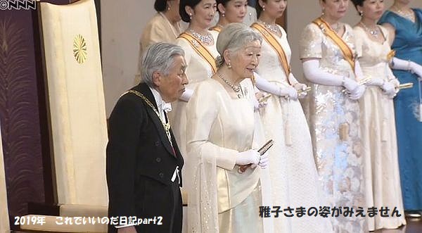 雅子夫人は天皇皇后に挨拶と午前の部に出て、各国大使とは会わなかったという、
