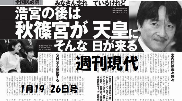 以前週刊新潮が、今上陛下が生前退位をなさり、その後皇太子が即位するも、短期間で同じく生前退位。その後秋篠宮が天皇に即位するという記事を出し、即刻宮内庁が「事実無根」のクレーム。対する新潮側は「根拠あり」と対抗。そのうちうやむや・・という流れがありました。今から思うと、少なくとも「生前退位」の部分は合っていて、陛下は今から7年以上前から退位したいとおっしゃっておられたそうですから、少なくとも事実無根ではない箇所も結構あるわけでした。