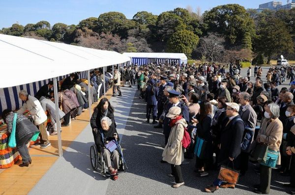 宮内庁庁舎前には記帳所も設けられ、多くの人たちが足を運んだ。朝日新聞